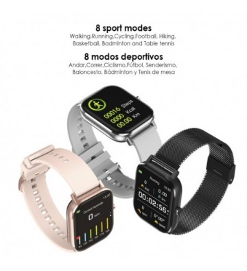 Smartwatch DT35+ con pulsera de acero. Notificaciones en pantalla iOS y Android.