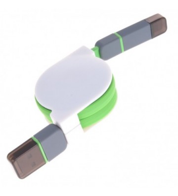 DAM.Cable enrollable 2 en 1. Micro USB Lightning 8 Pins iOS + Android UNICA.4x1,8x12 cm. COLOR: Verde .