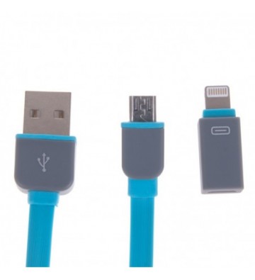 CABLE USB 2.0 PLANO EXTENSIBLE HASTA 1 METRO CON CONEXIÓN MICRO USB Y ADAPTADOR PARA CONEXIÓN LIGHTNING (IPHONE5/6/6P) USB 2.0 PVC Aleación_de_Metal