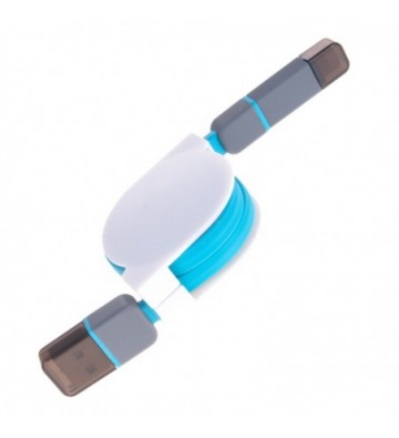 DAM.Cable enrollable 2 en 1. Micro USB Lightning 8 Pins iOS + Android UNICA.4x1,8x12 cm. COLOR: Azul .