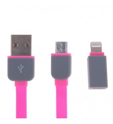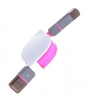 DAM.Cable enrollable 2 en 1. Micro USB Lightning 8 Pins iOS + Android UNICA.4x1,8x12 cm. COLOR: Rosa .