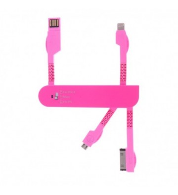 DAM.CABLE 3 EN 1 FORMA NAVAJA. Micro USB, Lightning 8 y 30 pins USB UNICA.2x1,6x9,2 cm. COLOR: Rosa .