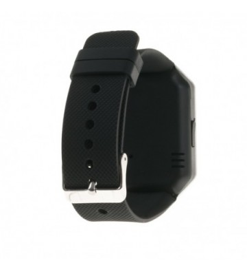Smartwatch Ártemis bluetooth V3.0. Conectividad bluetooth compatible con iOS y Android. Función de notificaciones sólo disponible para Android (necesaria descarga de APP gratuita). Pantalla TFT HD LCD 1.56" táctil OGS capacitiva CPU MTK6260A Cámara de fotos integrada Admite tarjeta SIM (micro SIM) y Micro SD de hasta 32GB Batería de litio de 380mAh Duración de batería en reposo de 60 a 120 horas Duración de batería en conversación 1.5 a 3 horas Funciones: • Mensajería • Registro de llamadas • Bt dialer (marcador de teléfono bluetooth) • Notificaciones remotas (configurables desde APP, para aplicaciones como Whatsapp, Facebook, Twitter, etc.) • Disparador de cámara remoto • Control de pérdida • Otras funciones: alarma (sonido y vibración), calendario, calculadora, reproductor de música, cámara de fotos, cámara de vídeo, visor de imágenes, reproductor de vídeo, grabador de sonidos, explorador web. Funciones de salud: • Podómetro • Monitor del sueño • Control sedentario Incluye cable de carga micro USB a USB. CPU MTK6260A Bluetooth: 3.0 Pantalla de 1.56 pulgadas TFT HD LCD Panel táctil: OGS Capacitive Touch panel Batería de 380mAh de polímero de litio. Duración en modo stand-by:60-120 horas Duración en modo llamada: 1.5-3 horas Peso: 58 gr. PVC Aleación_de_Metal