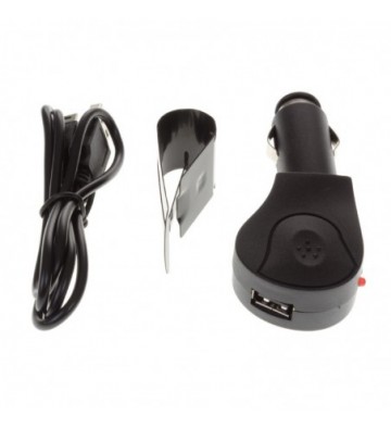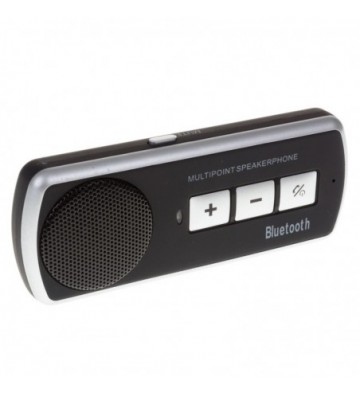 Manos libres bluetooth para coche con adaptador para parasol. Diseño bicolor, con pestaña de agarre separable del aparato. Botones de gran tamaño para facilitar su uso. Incluye adaptador de mechero USB y cable de carga de 1 metro. Bluetooth versión 4.0. Tiempo de conversación de 18 horas, 60 días en modo stand by. Soporta perfiles hsp.hfp 1.5. Altavoz de altas prestación con reducción de ruido y eco. PVC Aleación_de_Metal