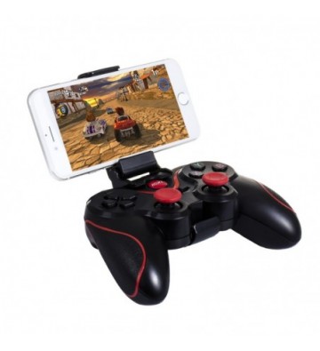 Mando Bluetooth, compatible con Smarthphones, tablets y PC (con emisor bluetooth preinstalado o externo). Compatible con Android 3.2 y superiores. Diseño ergonómico: acceso a los botones de manera cómoda sin forzar la posición de los dedos. Incluye un soporte extensible en el que podrás colocar tu dispositivo de entre 4,5 hasta 8 cm para jugar de la forma más cómoda. Dispone de 3 modos de utilización: -Modo GamePad. -Modo ratón. -Modo ratón y multimedia. No funciona con todos los juegos del mercado, consulte compatibilidad. Medida mínima de la zona extensible: 4,5 cm Medida máxima de la zona extensible: 8 cm Hasta 14 horas, dependiendo del dispositivo PVC Aleación_de_Metal