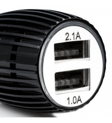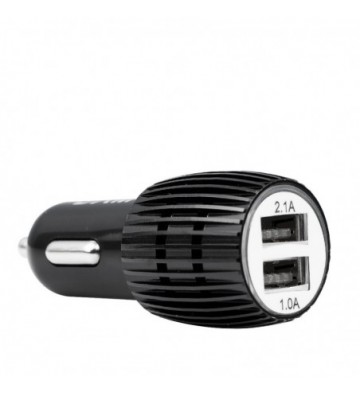 Cargador rápido para coche, con dos salidas USB de 1 y 2.1 amperiOS. Diseño con carcasa metálica y orificiOS de ventilación para evitar el sobrecalentamiento. Protección contra sobrecarga. Voltaje de entrada: 12-24V y de 50 a 60 Hz. Voltaje de salida: 5.0V 1A. PVC Aleación_de_Metal