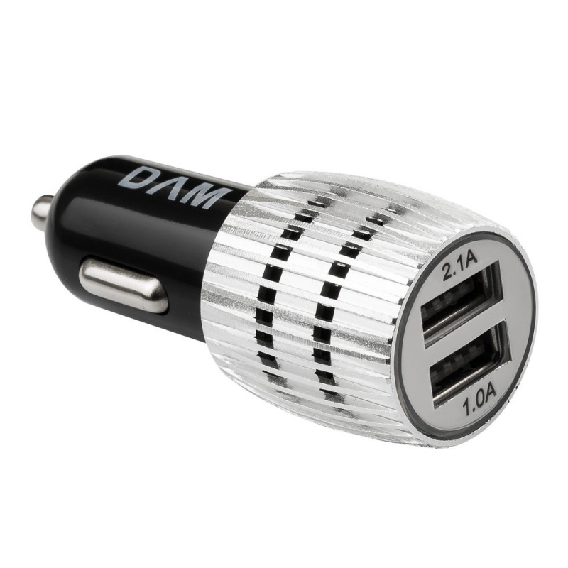 DAM.Cargador rápido para coche, con dos salidas USB. Doble USB UNICA.3x3x7 cm. COLOR: Plata .