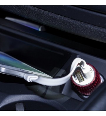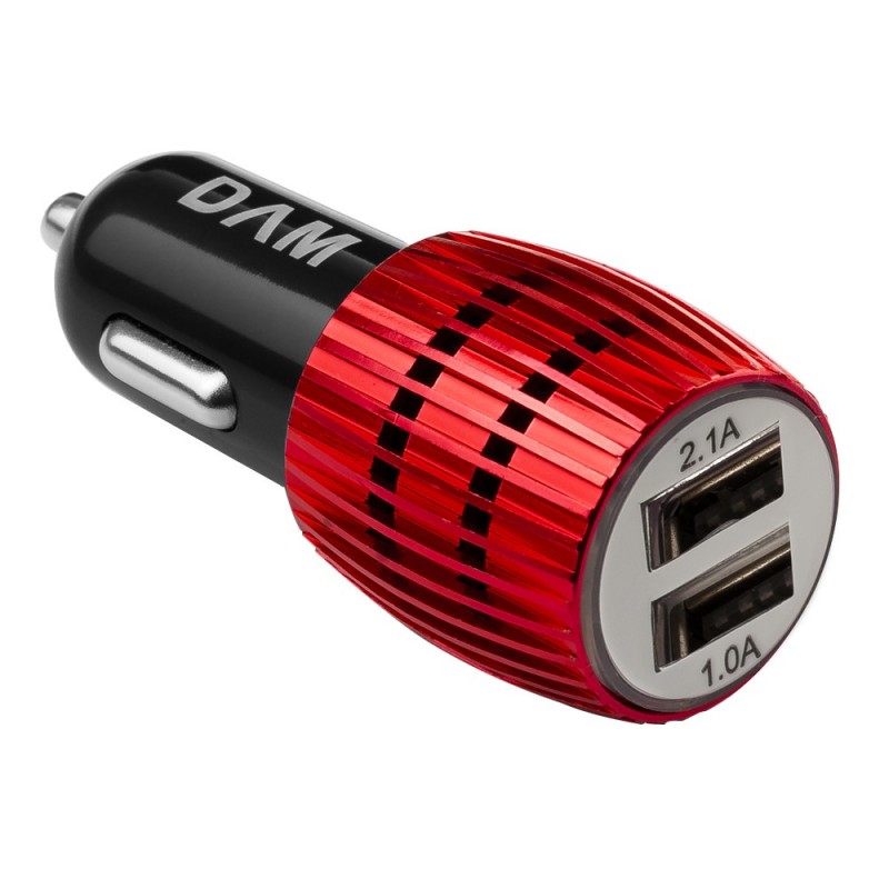 DAM.Cargador rápido para coche, con dos salidas USB. Doble USB UNICA.3x3x7 cm. COLOR: Rojo .