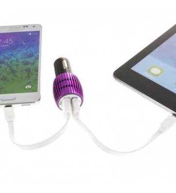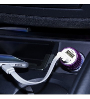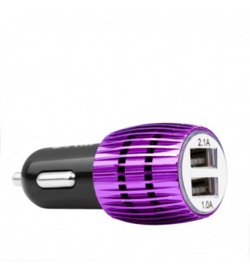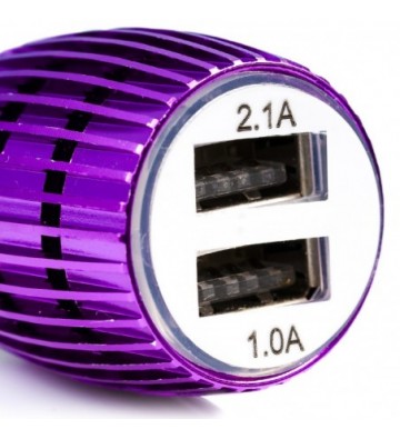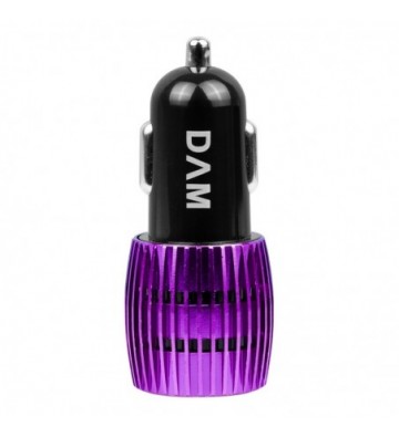 DAM.Cargador rápido para coche, con dos salidas USB. Doble USB UNICA.3x3x7 cm. COLOR: Morado .