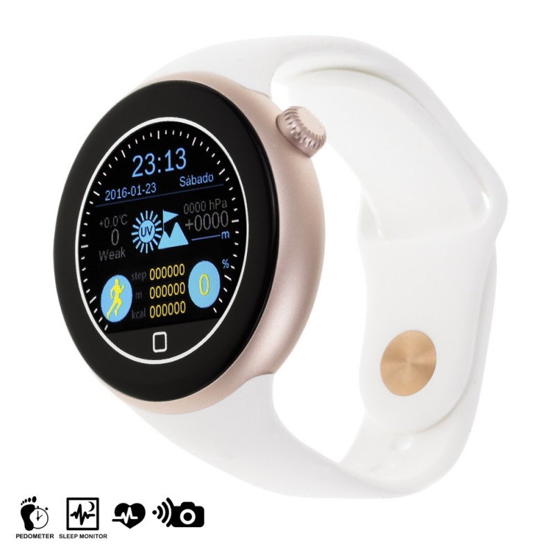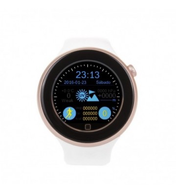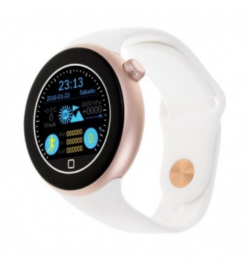 Smartwatch Bluetooth Aiwatch C1, compatible con Android (4.4 ó superior) e iOS (OS7 o superior). Pantalla táctil de 1.22 pulgadas IPS circular 2.5D, con función de encendido mediante giro de muñeca.