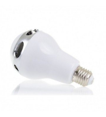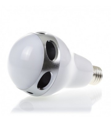 Altavoz diseño Bombilla con reproductor MP3, Bluetooth e iluminación Led pudiendo seleccionar el color desde una amplia gama mediante APP, conectando el altavoz mediante su casquillo E27 en un soporte de iluminación. Potencia altavoz: 6 W. Potencia lámpara LED: 8 W. Lúmenes lámpara LED: 900 LM. Salida de señal: 3 00-15 K. Alcance: hasta 10m sin obstáculos. Autonomía: hasta 5 - 6 horas. Tipo de bombilla: E27 PVC Aleación_de_Metal