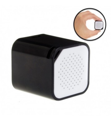 Altavoz de pequeñas dimensiones diseño cúbico con reproductor MP3, Bluetooth, manos libres y autodisparador para cámara de teléfono móvil. Luz de carga e indicación. Contiene cable USB-Micro USB y colgador para teléfono móvil. Bluetooth: 3.0+EDR. Distancia de transmisión: 10 m. Batería: 3.7 V 180 Mah. Potencia: 3 W. Peso: 19 g. SNR: 80 db. Respuesta de frecuencia: 180 Hz-16KHz. Voltaje: 5V/500 mA. PVC Aleación_de_Metal