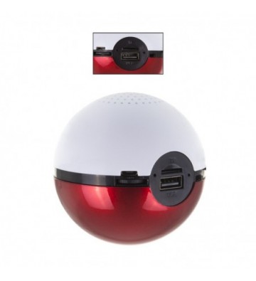 Altavoz esférico diseño Powerball con radio, reproductor MP3 y Bluetooth. Manos libres. Lector de tarjeta Micro SD. Entrada USB. Contiene cable USB-Micro USB y correa para colgar. Potencia: 3 W. Voltaje: DC 5V. PVC Aleación_de_Metal