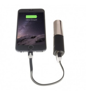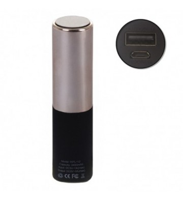 Powerbank con forma de lápiz de labiOS. Salida USB y batería de 2400mAh. Dispone de Luz LED de carga. Contiene cable USB-Micro USB de 21 cm. Capacidad de la batería: 2400mAh Micro-USB entrada: DC 5V-1A. USB salida: DC 5V-1A. PVC Aleación_de_Metal