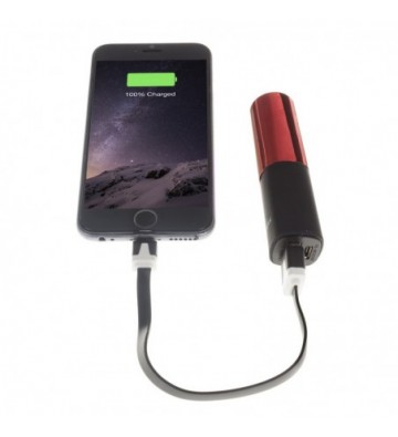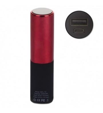 Powerbank con forma de lápiz de labiOS. Salida USB y batería de 2400mAh. Dispone de Luz LED de carga. Contiene cable USB-Micro USB de 21 cm. Capacidad de la batería: 2400mAh Micro-USB entrada: DC 5V-1A. USB salida: DC 5V-1A. PVC Aleación_de_Metal