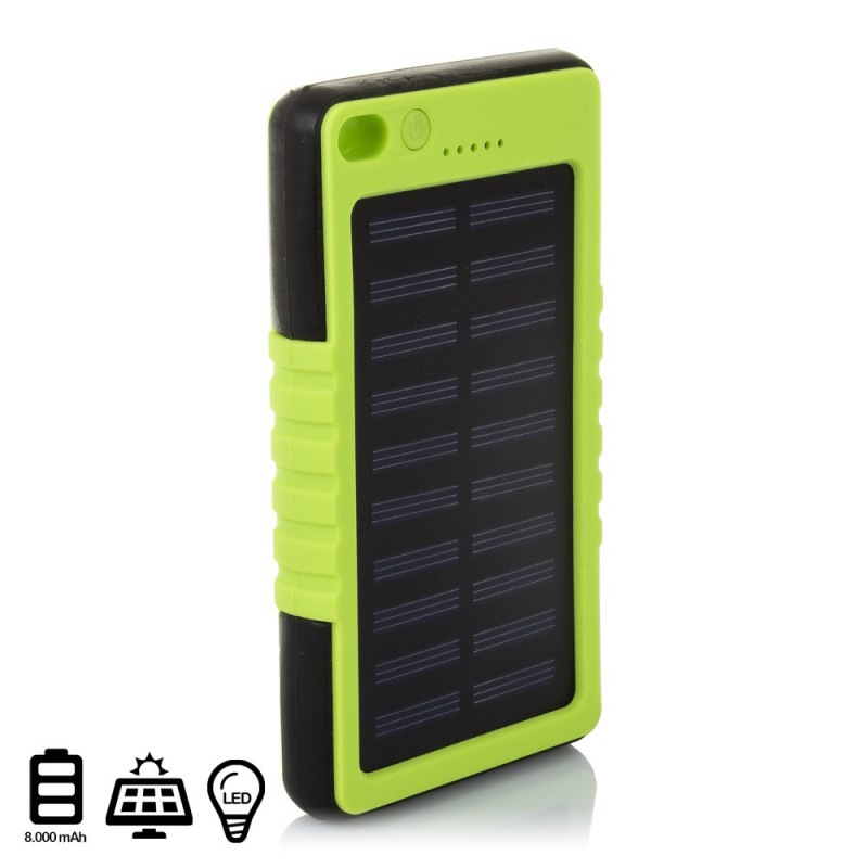 DAM.POWERBANK SOLAR 8.000mAh. USB 8000 mAh UNICA.7,4x1,5x13,2 cm. COLOR: Verde .