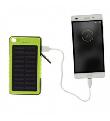 Powerbank con panel solar fotosensible para su carga. Incluye batería de 8000mAh recargable también mediante la corriente eléctrica. Leds indicadores de nivel de carga en el frontal. Resistente a salpicaduras, polvo e impactos por caída. Incorpora linterna LED para emergencias. Contiene cable USB-Micro USB de 28 cm. Capacidad de la batería: 8000mAh Micro-USB entrada: DC 5V/1A. USB salida: DC 5V/1A. Carga solar: 5V/1A PVC Aleación_de_Metal