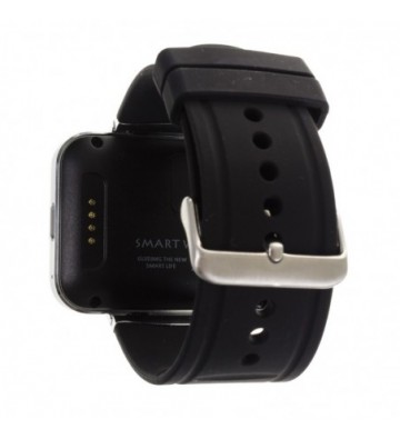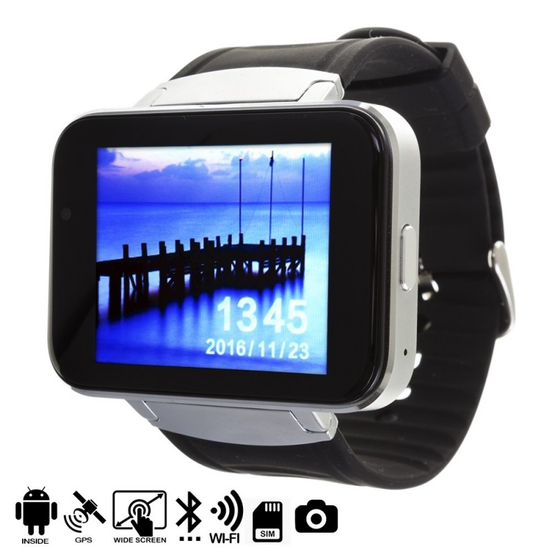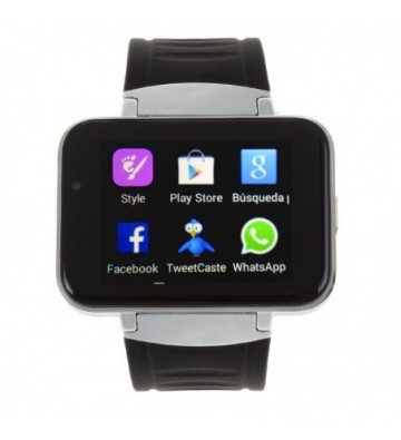 Smartwatch phone con sistema Android 4.4 incorporado. Pantalla táctil TFT de alta sensibilidad de 2 pulgadas, con gran claridad y resolución, de amplio ángulo de visión, con 320x240px de resolución. Con posibilidad de tarjeta micro SIM. Aplicaciones descargables a gusto del usuario. Correa de caucho regulable.