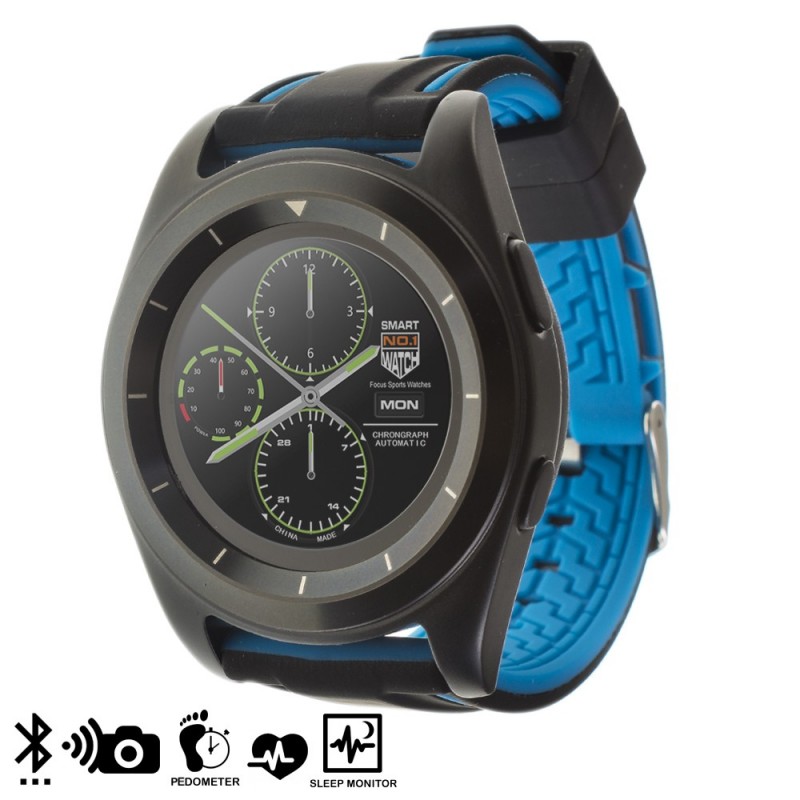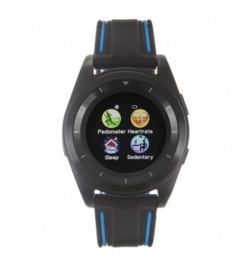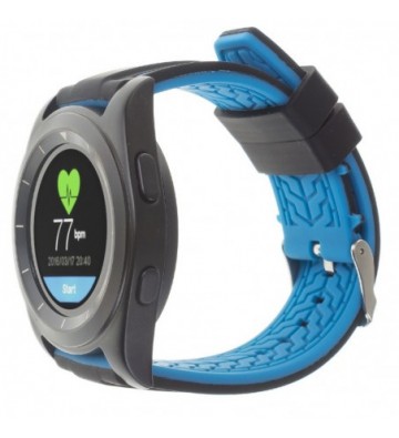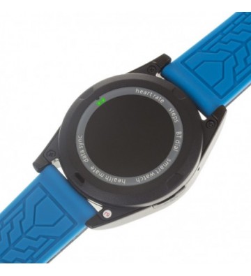 Smartwatch con pantalla táctil circular de 1.2 pulgadas IPS. 242x204 píxeles de resolución. Compatible con Android e iOS. Incluye dos correas intercambiables de caucho.