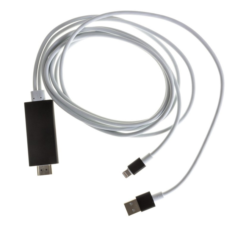 Conecta el cable al puerto HDMI de tu televisor, al conector lightning de tu dispositivo iPhone/iPad y a un cargador o puerto USB.