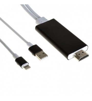 Cable HDMI para dispositivos iPhone e Ipad compatibles con la conexión lightning 8 pines. (Compatible con versión iOS 8 a iOS 11.3, consulte la instalada en su terminal).