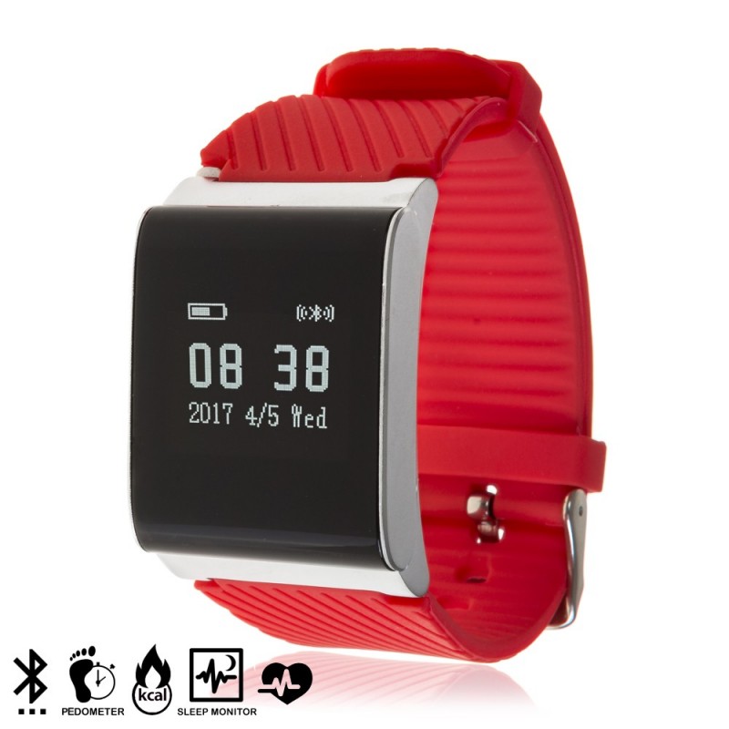 Brazalete inteligente con pantalla OLED de OLED 228*64 y conexión Bluetooth para Android y iPhone. Correa regulable. Incluye cable cargador. Funciones: • Aviso de llamadas, SMS y Whatsapp mediante vibración (necesaria descarga de aplicación gratuita). • Función anti pérdida. • Alarma (configurable desde app). Funciones de salud: • Podómetro con contador de pasos. • Contador de calorías quemadas. • Distancia recorrida (en metros). • Monitor de sueño. • Monitor cardíaco. Cuando el brazalete ha acabado de realizar la medición, la pantalla mostrará los siguientes datos: - Número de pulsaciones. - Presión sanguínea. - Cantidad de oxígeno en sangre. • Objetivo de ejercicio (a través de app). • Control sedentario (configurable a través de app). Mediante la app podrá acceder a gráficos (con datos diarios y mensuales) de: - Número de pasos (con datos de distancia recorrida y calorías quemadas). - Frecuencia cardiaca. - Sueño (con datos de sueño profundo y sueño ligero). - Presión sanguínea. - Cantidad de oxígeno en sangre. Chip: NS1882 Pantalla: OLED 228*64. Batería de 100mAh. Bluetooth 4.0 Goma Aleación_de_Metal