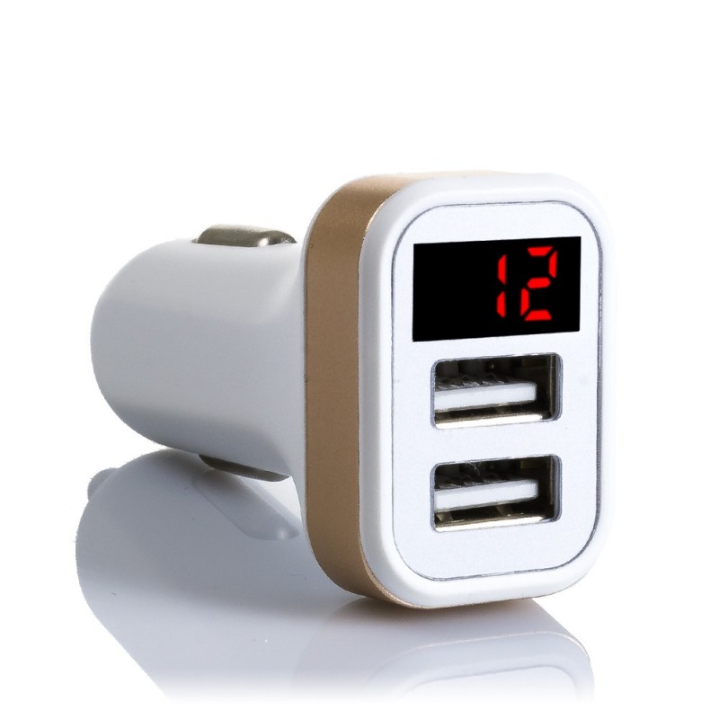 DAM.Cargador PARA COCHE DOBLE USB 4.2A con display LED. Doble USB UNICA.3,5x2,5x6,8 cm. COLOR: Oro .