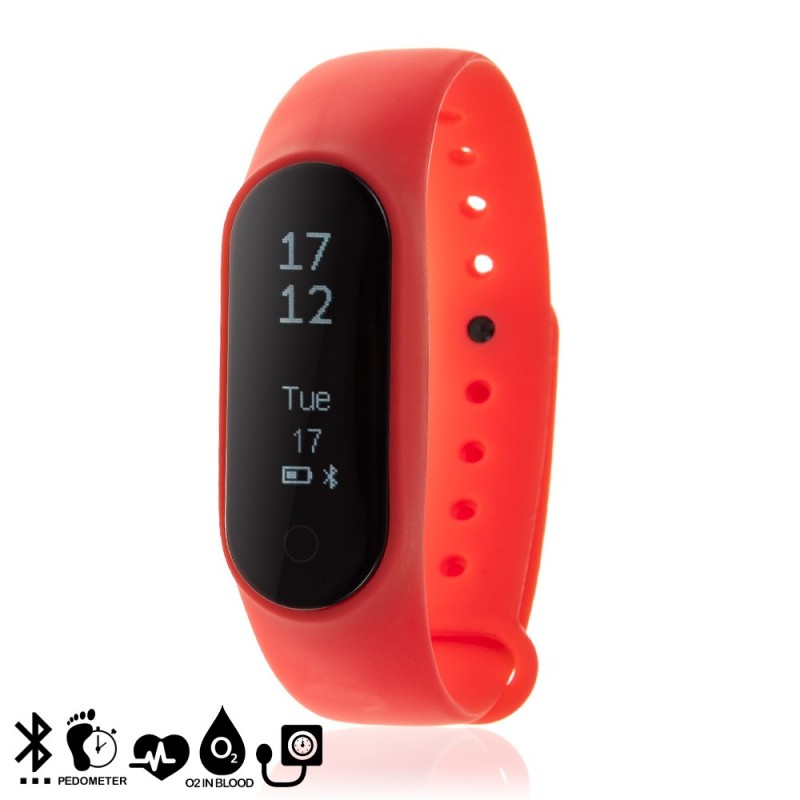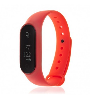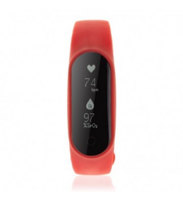 Brazalete inteligente con pantalla panorámica OLED de 0,49 pulgadas y conexión Bluetooth para iPhone y Android. Incluye cargador. Funciones: • Aviso de llamadas y SMS mediante vibración (necesaria descarga de aplicación gratuita). • Notificaciones de Whatsapp, Facebook, Twitter (necesaria app). • Función anti pérdida. Funciones de salud: • Monitor cardíaco. • Medidor de oxígeno en sangre. • Presión sanguinea. • Podómetro con contador de pasos. • Contador de calorías quemadas. • Distancia recorrida (en KM). CPU: Dialog DA14580 Pantalla OLED de 0,49" Bluetooth 4.0 Batería: 60mAH Autonomía: hasta 120h en modo stand-by. RAM: 64MB para el sistema. Compatibilidad: Ios + Android. Silicona Aleación_de_Metal