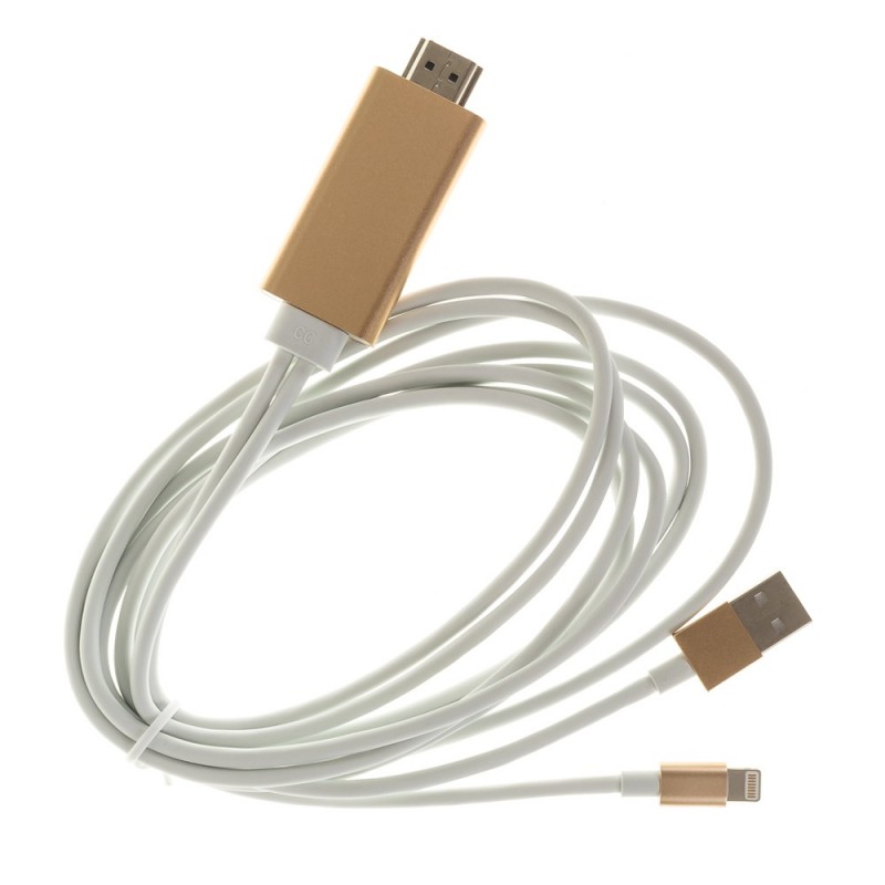 Conecta el cable al puerto HDMI de tu televisor, al conector lightning de tu dispositivo iPhone/iPad y a un cargador o puerto USB.
