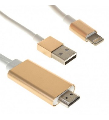 Cable HDMI para dispositivos iPhone e Ipad compatibles con la conexión lightning 8 pines. (Compatible con versión iOS 8 a iOS 11.3, consulte la instalada en su terminal).