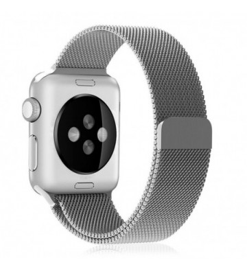 Correa metálica con cierre magnético de seguridad para Apple Watch de 42mm / 44mm. • Multiples posiciones gracias al sistema de hebilla y broche magnético. • Hebilla con sistema de seguridad. • Podrás ajustarla al milímetro al tamaño de tu muñeca. • Sistema de eslabones con máxima flexibilidad de posición. • Perímetro mínimo aproximado: 172mm • Perímetro máximo aproximado: 278mm Compatible con Apple Watch: Series 1, Series 2, Series 3, Series 4 Metal
