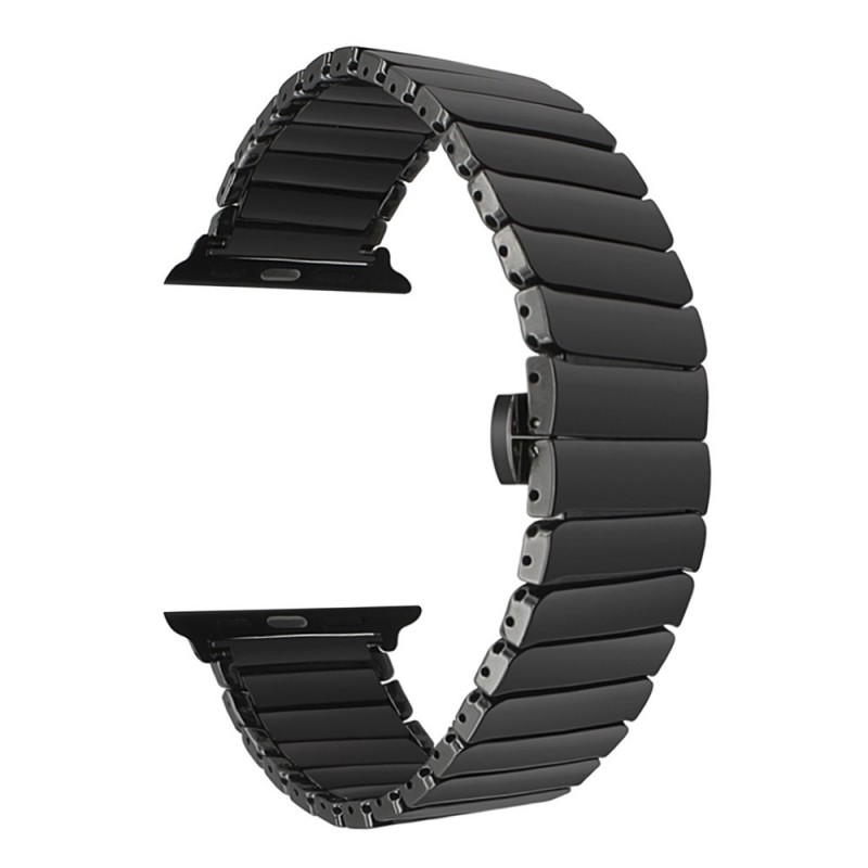Correa cerámica con acabado brillante para Apple Watch de 38mm / 40mm. • 6 eslabones móviles extraíbles. • Cierre de seguridad de mariposa de doble botón, en acero inoxidable. • Adaptadores a Apple Watch de acero inoxidable. • Perímetro mínimo aprox: 168mm • Perímetro máximo: 204mm Compatible con Apple Watch: Series 1, Series 2, Series 3, Series 4 Cerámica Metal