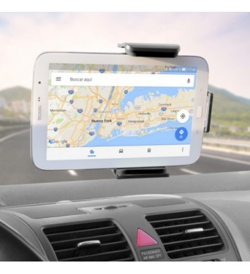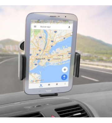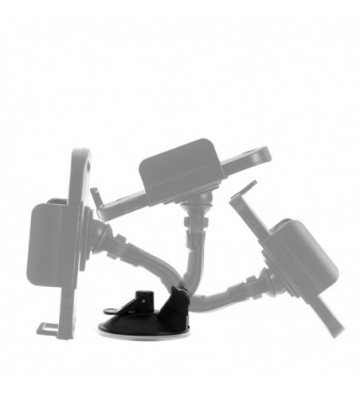 Soporte de tablets para coche. Para tablets de 7 a 11 pulgadas. Sistema de sujeción rápida Quick-Release. Zonas de apoyo con acabado en gomaespuma suave para mejorar el agarra y evitar daños en el dispositivo. Base con rotación de 360° y ajuste de inclinación, con sistema de ajuste multiposición para adecuarse a todas las situaciones de uso. Con rueda de bloqueo para fijar la posición frente a movimientos bruscos. Ventosa de gran tamaño, con sistema de alta succión y cierre de seguridad. Para tablets de hasta 20,5cm de anchura. PVC Aleación_de_Metal