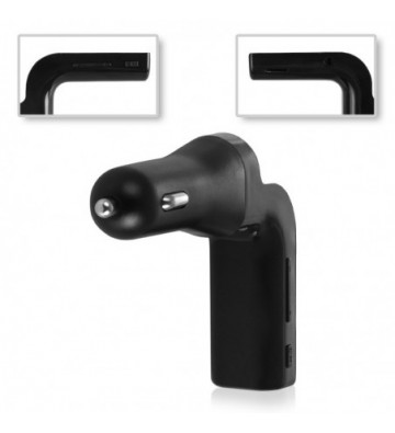 Kit 4 en 1 con manos libres bluetooth y transmisor FM. • Gracias al transmisor FM, podrás escuchar por los altavoces de tu vehículo música desde: - Reproductor de música vía Bluetooth. - Entrada de audio auxiliar. - Reproductor MP3 y WMA mediante tarjeta micro SD y pendrive USB. • Manos libres inalámbrico, con opciones de: responder llamada, colgar, rechazar llamada y rellamada. • Tecnología de cancelación de eco y supresión de ruido (CVC) para una máxima calidad de llamadas en modo manos libres. • Display digital de alto contraste. • Apagado automático. • Toma de carga USB con salida de 2.1A Bluetooth: 2.1 + EDR Procesador de sonido bluetooth: A2DP soportado Formatos de archivos de música aceptados: MP3 y WMA Relación señal ruido: >60Db Distorsión: <0.1% Respuesta en frecuencia: 20Hz-15KHz Distancia de transmisión Bluetooth: hasta 10 metros. PVC Aleación_de_Metal