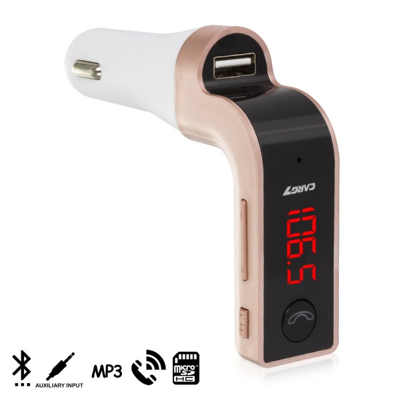 DAM.Kit 4 en 1 con manos libres Bluetooth y transmisor FM para coche. Bluetooth UNICA.2.6x10.2x8 cm. COLOR: Oro Rosa .