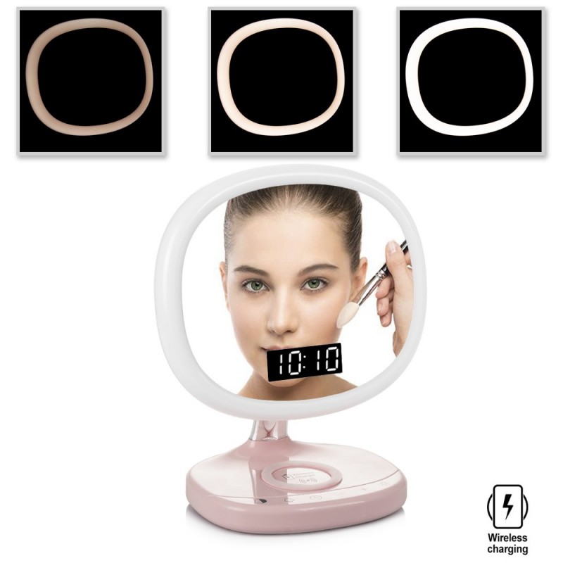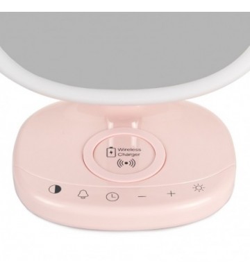 Luz despertadora con zona de carga sin cable, reloj, alarma y termómetro.