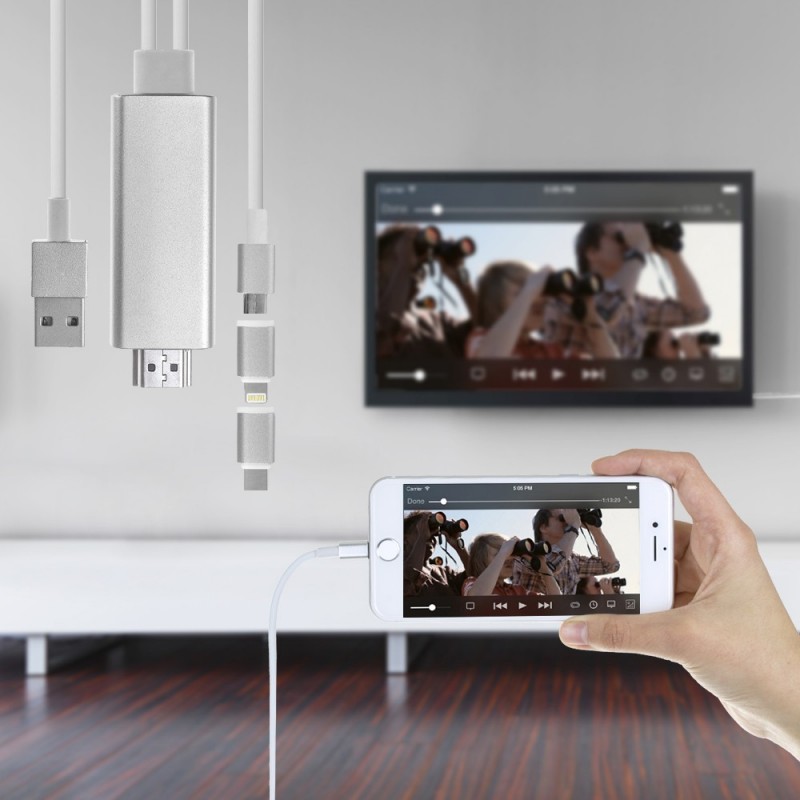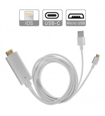 Cable HDMI TPE con conector para iOS micro USB y Tipo C (Android)