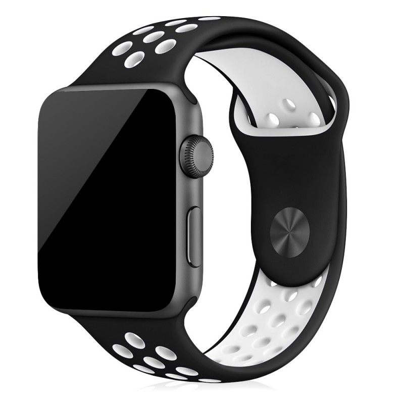 DAM.Correa deportiva de silicona Compatible iWatch 42mm / 44mm Talla S/M. S/M.20,5x2x0,25 cm. COLOR: Negro Blanco.