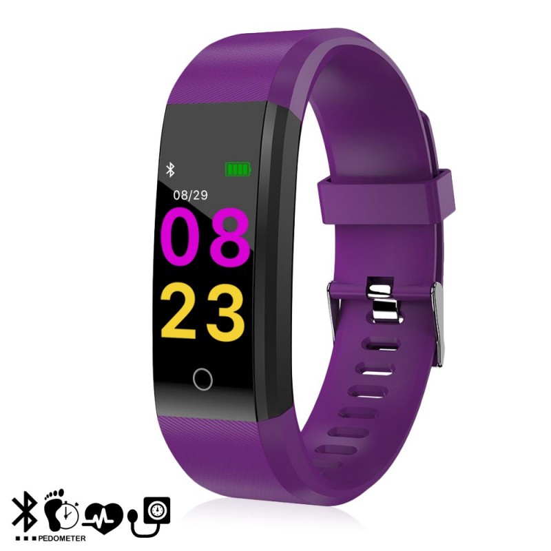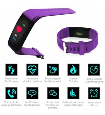 DAM.Brazalete inteligente ID115 con monitor cardíaco, presión sanguínea y notificaciones para iOS y Android. Bluetooth 4.0 iOS + Android UNICA.4,5x2x1,1 cm. COLOR: Morado .