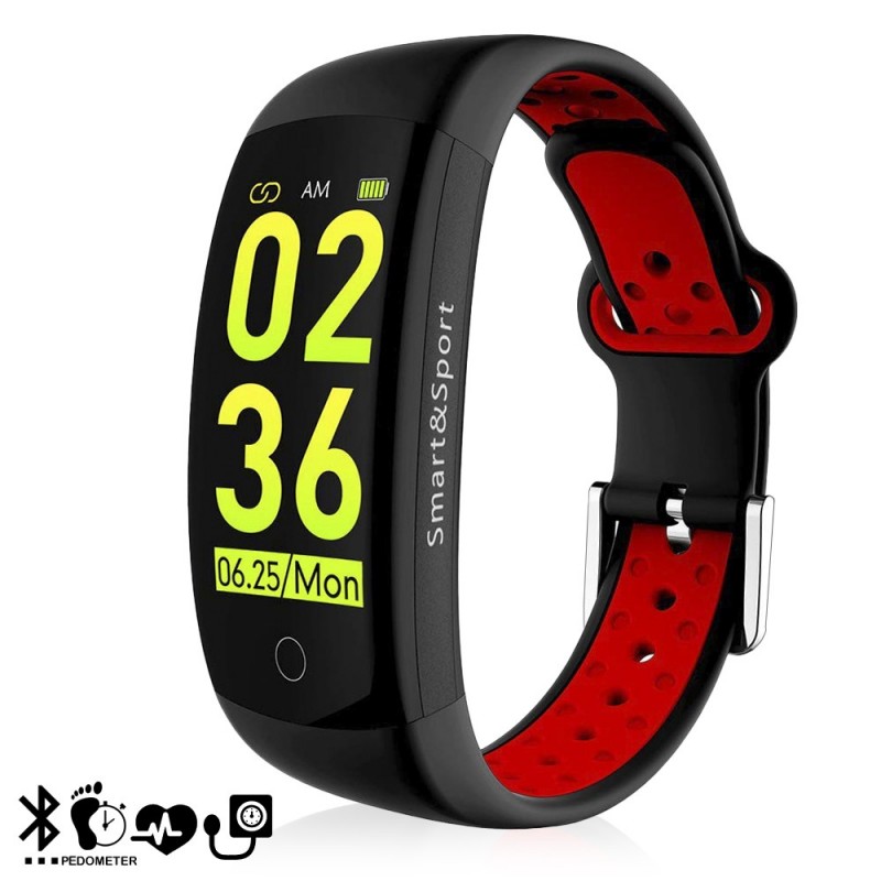 Pulsera inteligente Q6S con pantalla a color de 0,96 pulgadas y conexión Bluetooth para iPhone (iOS 8.2 y superior) y Android (4.4 y superior).