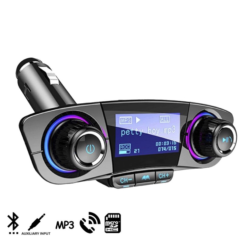 Manos libres bluetooth y transmisor FM BT06 con pantalla de 1,3 pulgadas.