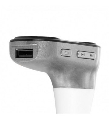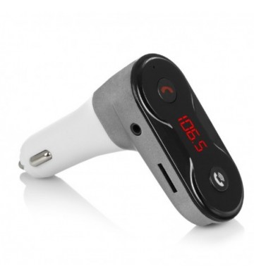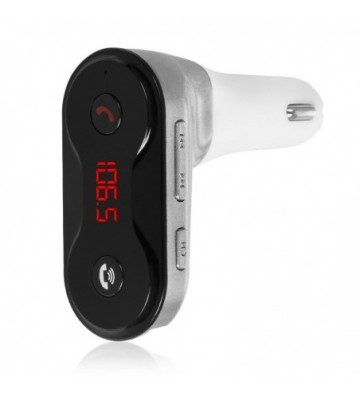 Manos libres bluetooth y transmisor FM CARC8. • Gracias al transmisor FM, podrás escuchar por los altavoces de tu vehículo música desde: - Reproductor de música vía Bluetooth. - Entrada de audio auxiliar. - Reproductor MP3 mediante tarjeta micro SD y pendrive USB. • Manos libres inalámbrico, con opciones de: responder llamada, colgar, rechazar llamada y rellamada. • Tecnología de cancelación de eco y supresión de ruido (CVC) para una máxima calidad de llamadas en modo manos libres. • Display digital de alto contraste. • Apagado automático. • Toma de carga USB con salida de 1A Bluetooth: 3.0 + EDR Procesador de sonido bluetooth: A2DP soportado Formatos de archivos de música aceptados: MP3 Sensibilidad: 92dB Respuesta en frecuencia: 20Hz-20KHz Distancia de transmisión Bluetooth: hasta 5 metros. Frecuencia del emisor FM: 87.5 – 1 PVC Aleación_de_Metal