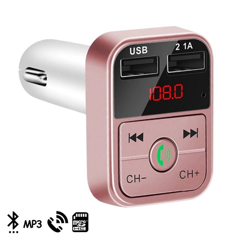 DAM.Manos libres Bluetooth CARB2 para coche con transmisor FM. Bluetooth Universal UNICA.3,7x8x5 cm. COLOR: Oro Rosa .