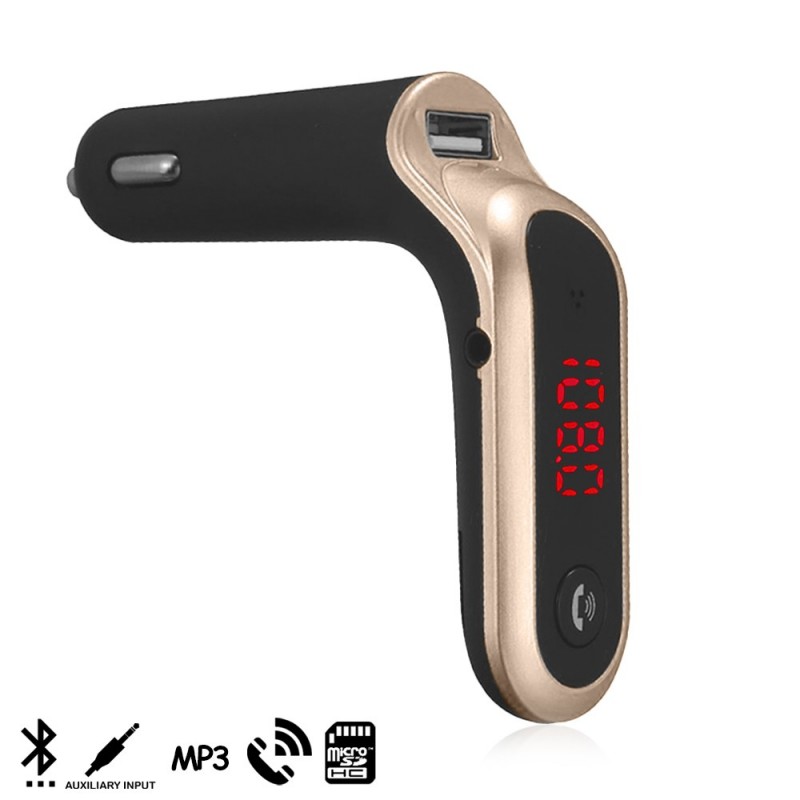 DAM.Manos libres Bluetooth CARS7 para coche con transmisor FM. Bluetooth Universal UNICA.8,7x9,2x2,9 cm. COLOR: Oro .