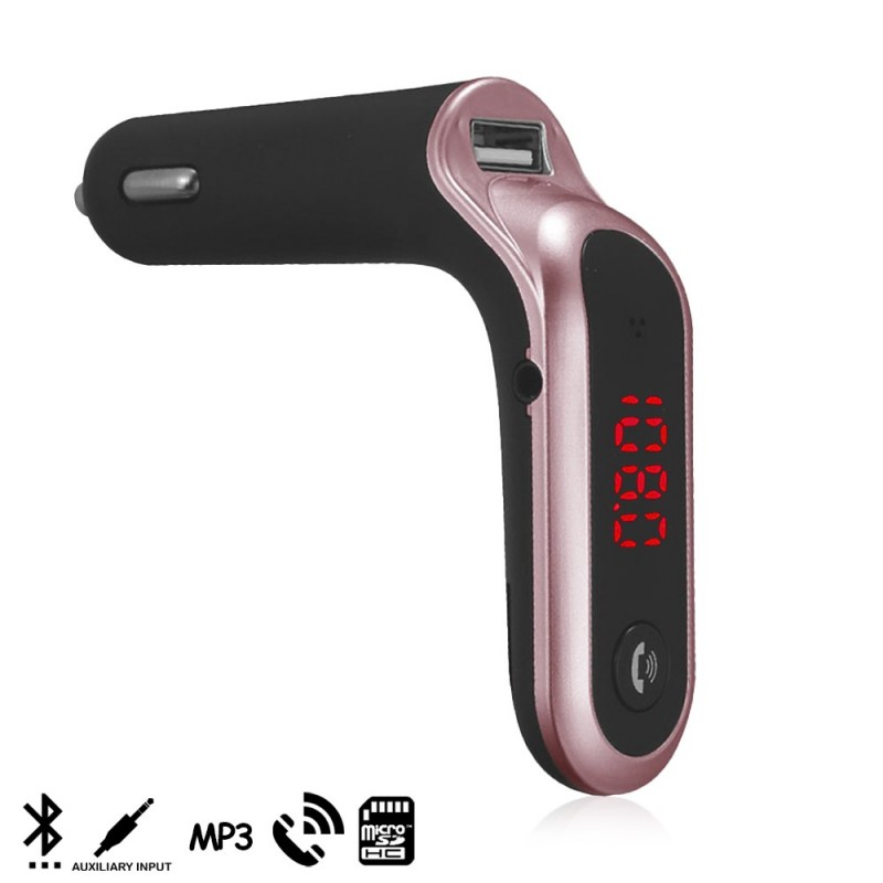 DAM.Manos libres Bluetooth CARS7 para coche con transmisor FM. Bluetooth Universal UNICA.8,7x9,2x2,9 cm. COLOR: Oro Rosa .