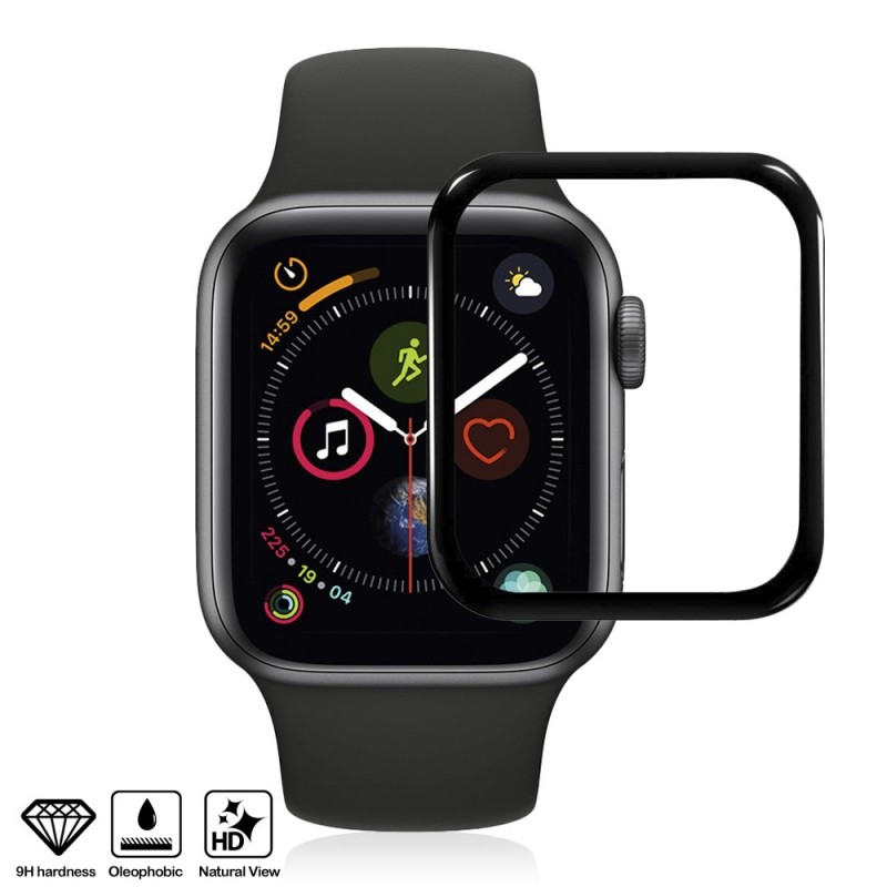 DAM.Protector de pantalla de cristal templado con bordes curvados a color para Apple Watch 40mm (Serie 4). UNICA.xx cm. COLOR: Negro .