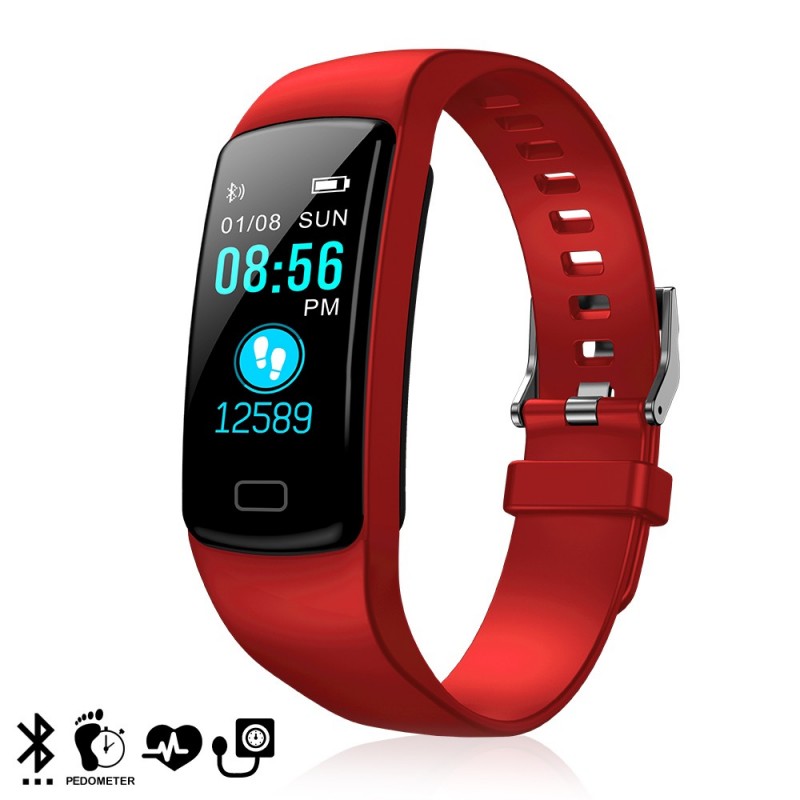 DAM.Brazalete inteligente Y9 con medición de presión sanguínea y oxímetro. Bluetooth 4.0 iOS + Android UNICA.2x1,2x3,8 cm. COLOR: Rojo .