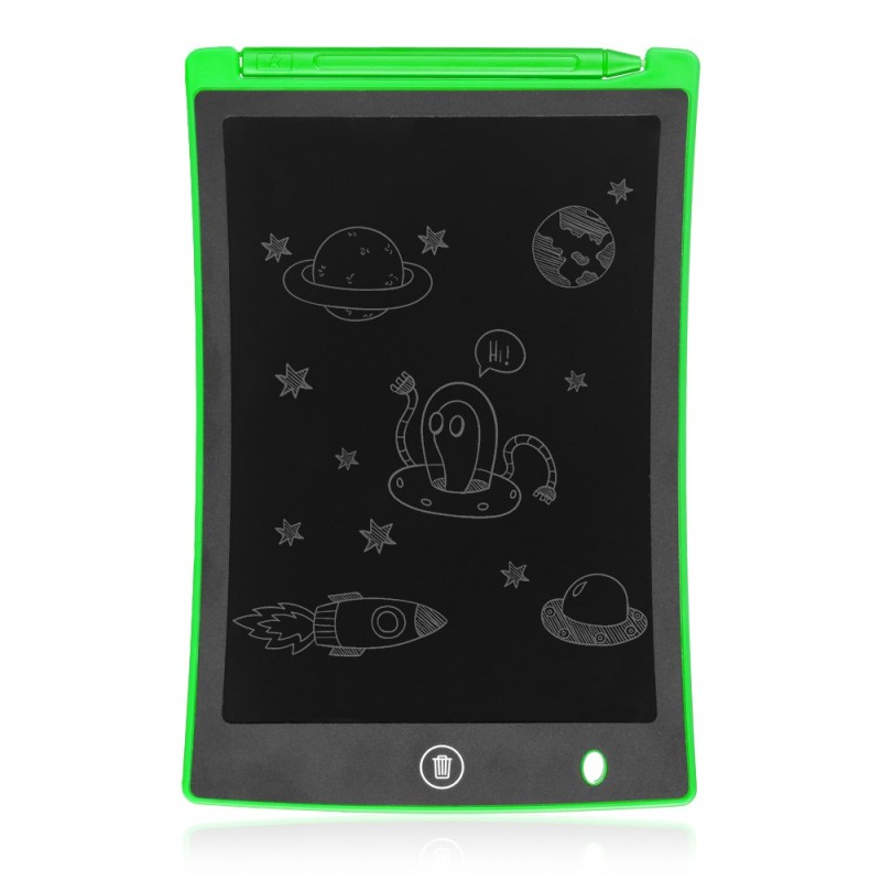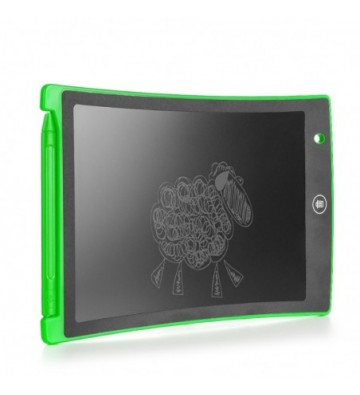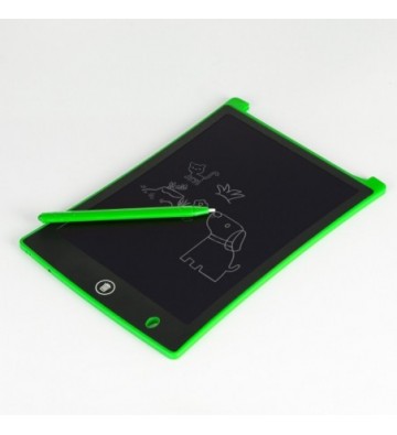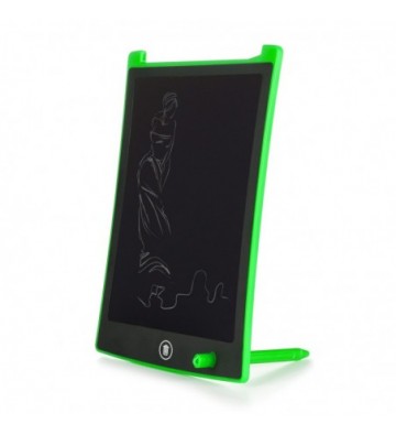 Tableta para escribir y dibujar, con pantalla de cristal líquido de 8,5 pulgadas. Permite la escritura y borrado de manera sencilla, pulsando un botón, con una duración de hasta 100.000 ciclos. Sensible a la presión: presionando suavemente, creará lineas más finas. Sin cansancio ocular. Incluye lápiz de escritura, con soporte integrado. Funciona con una pila de botón (incluída) con hasta 1 año de duración. PVC Aleación_de_Metal
