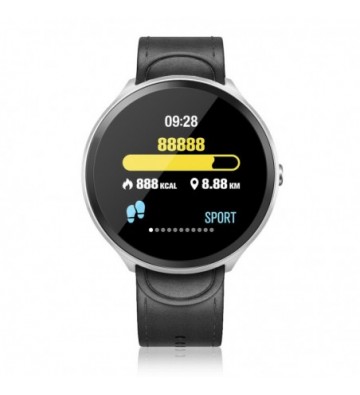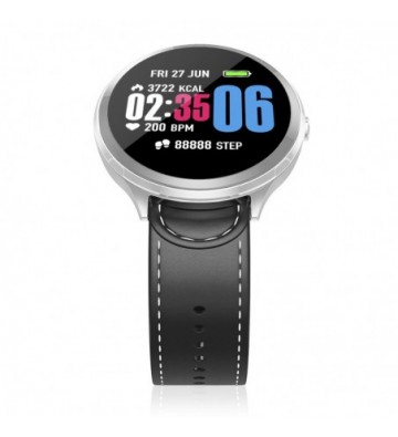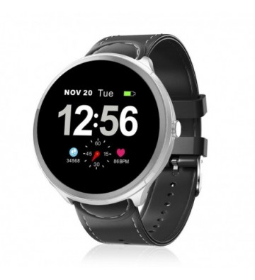 Pulsera inteligente AK-V12 con pantalla a color de 1,3 pulgadas y conexión Bluetooth. Correa de piel sintética regulable. Funciones: • Aviso de llamadas, SMS y Whatsapp mediante vibración (necesaria descarga de aplicación gratuita). • Función anti pérdida. • Control remoto de la música del teléfono. • Disparo remoto de la cámara del teléfono (necesaria app). Funciones de salud: • Podómetro con contador de pasos. • Contador de calorías quemadas. • Distancia recorrida. • Modo multideporte: correr, andar, natación, futbol, escalada. • Monitor de sueño, con medidor de tiempo de sueño y calidad del mismo. • Monitor cardíaco. • Medidor de presión sanguínea. Pantalla de color de 1.3 pulgadas. Memoria: 512KB + 32MB Batería de 110mah. Aleación_de_Metal PVC