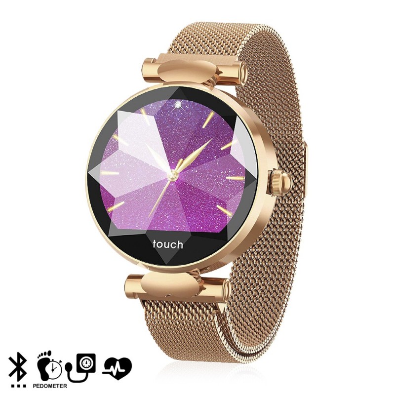 Correa metálica regulable. Incluye cable cargador USB magnético.